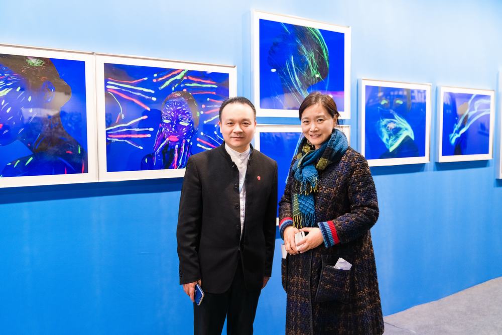 2018第十二届中国摄影金像奖展览现场、朱汉举和中国摄影家协会副主席刘鲁豫亲切交流合影
